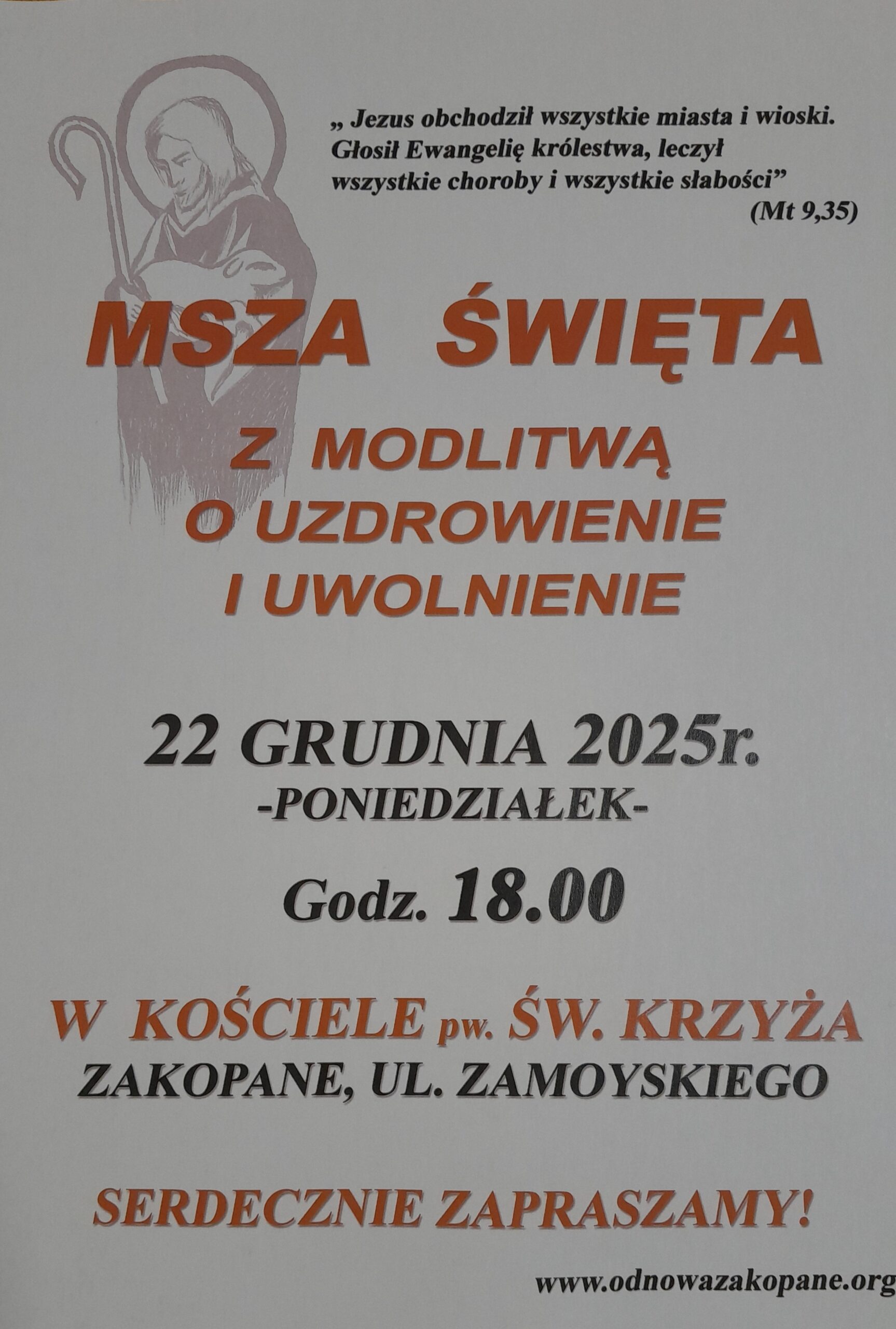 Zapraszamy po raz kolejny na Mszę Świętą którą celebrował będzie O. Józef Witko.